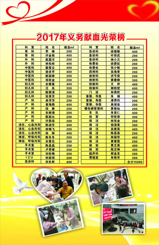 按照事先安排,先是行政后勤人員先來獻血。接下來是醫(yī)技和臨床醫(yī)護人員,副院長陳志琳、孕婦學校主任曾海燕、慢性病科主任黃麗仙等領導帶頭獻出200—400ml獻血。幾位女職工還動員自己的丈夫一起加入獻血行列。至活動結束,全院一共獻出近16000ml鮮血。