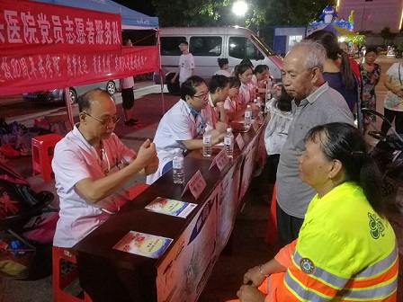 當天上午9點多,我院醫(yī)務部接待了隊長黃雪芳與兩名隊員,商談了義診活動的細節(jié)。下午4點,實踐隊員們來醫(yī)院搬運活動所需物品,先去廣場布場。傍晚6點多,我院的醫(yī)生和護士到達活動現(xiàn)場,義診活動正式開始。