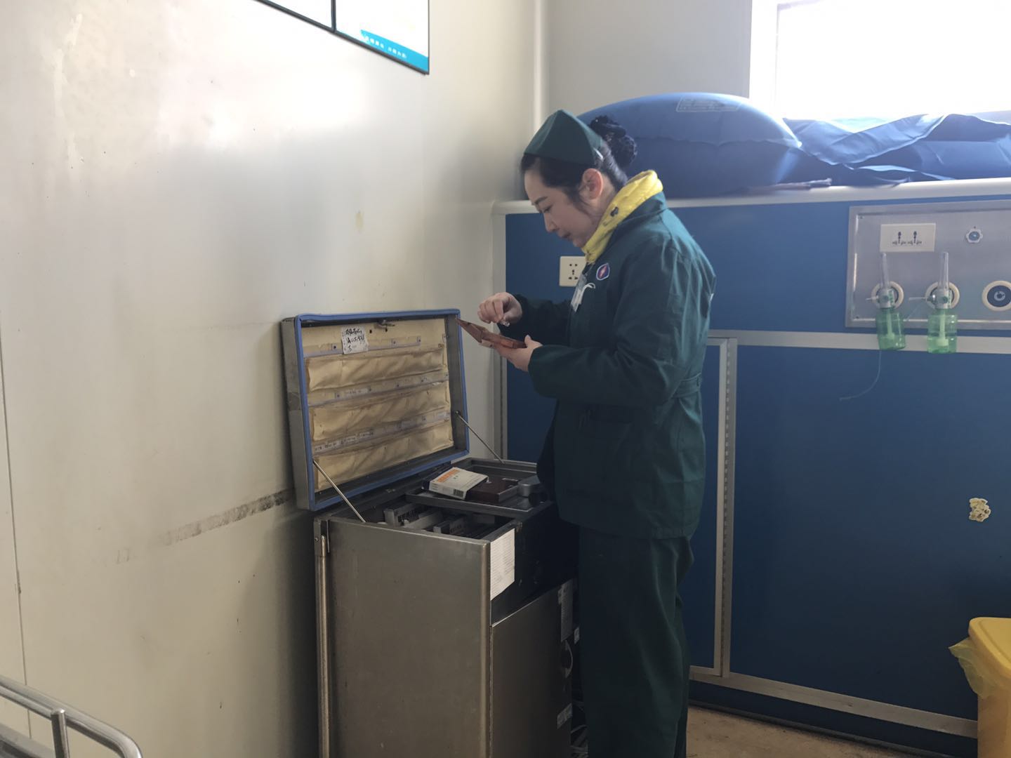 夜間同時(shí)有幾個(gè)病人需要拍片,CT檢查,她能合理的安排,讓大家都沒(méi)有意見(jiàn)。這邊一位危重的病人先CT檢查,安置好體位。去安撫哭泣的小娃娃,在這等待的二分鐘內(nèi)用一張面巾紙適時(shí)地安慰了焦急的媽媽和哭泣的小娃娃,配合拍片。第三安排骨折病人做CT檢查。第四位病人,木工,手背切割傷,傷口已包扎,讓其稍等,木工說(shuō):可以,那我去抽支煙吧。她說(shuō):可以,我們這有吸煙區(qū),吸根煙緩解了他的緊張和疼痛,抽完回來(lái)拍片,時(shí)間剛好。