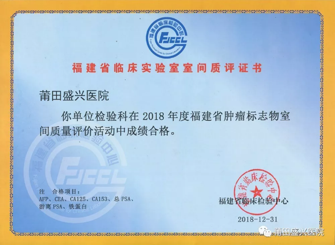 2018年參加了常規(guī)化學(xué)24項、感染性疾病血清學(xué)標(biāo)志物檢驗9項、臨床微生物學(xué)2項、內(nèi)分泌檢測5項、尿液化學(xué)分析10項、凝血試驗5項、全血細(xì)胞計數(shù)6項、糖化血紅蛋白檢測1項、血型檢測3項、腫瘤標(biāo)志物8項等,成績?nèi)亢细瘛?/p>